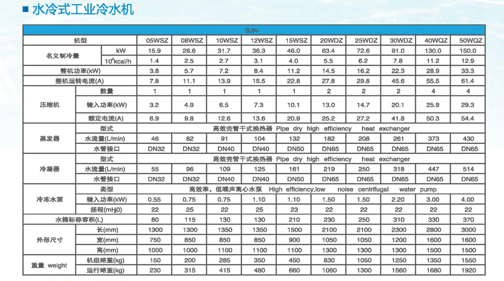 国际品牌全封闭涡旋免维护压缩机.按工业耐用型设计.完备的故障保护:高低压保护,排气保护,油位保护,水流保护,逆缺项保护,冷冻水防冻保护等.